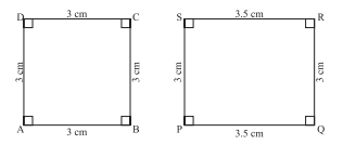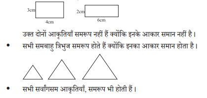 उक्त दोनों आकृतियों के माप (क्षेत्रफल) समान हैं परंतु आकार अलग-अलग हैं, अत: वर्ग एवं आयत समरूप आकृतियाँ नहीं हैं ।