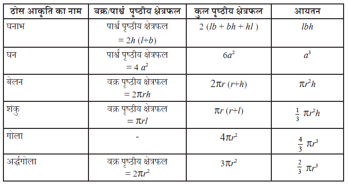 अध्याय- 12 पृष्ठीय क्षेत्रफल और आयतन