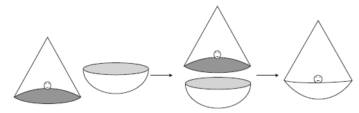 ठोस आकृति का संपूर्ण पृष्ठीय क्षेत्रफल = अर्द्धगोले का वक्र पृष्ठीय क्षेत्रफल + शंकु का वक्र पृष्ठीय क्षेत्रफल