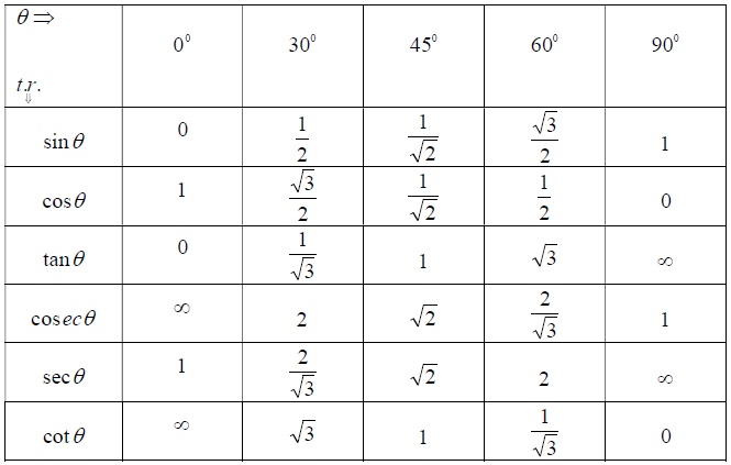 - कुछ विशिष्ट कोणों के त्रिकोणमितीय अनुपात