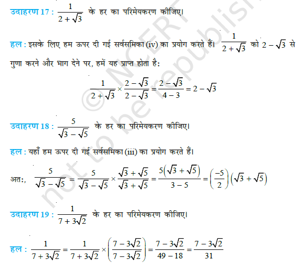 प्रश्न: निम्नलिखित के हरों का परिमेयकरण कीजिए: